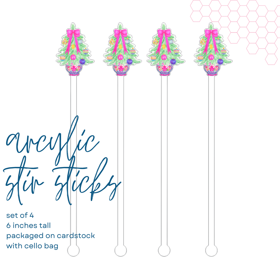 Merry & Bright Christmas Acrylic Stir Stick Beverage Stick | Set of 4