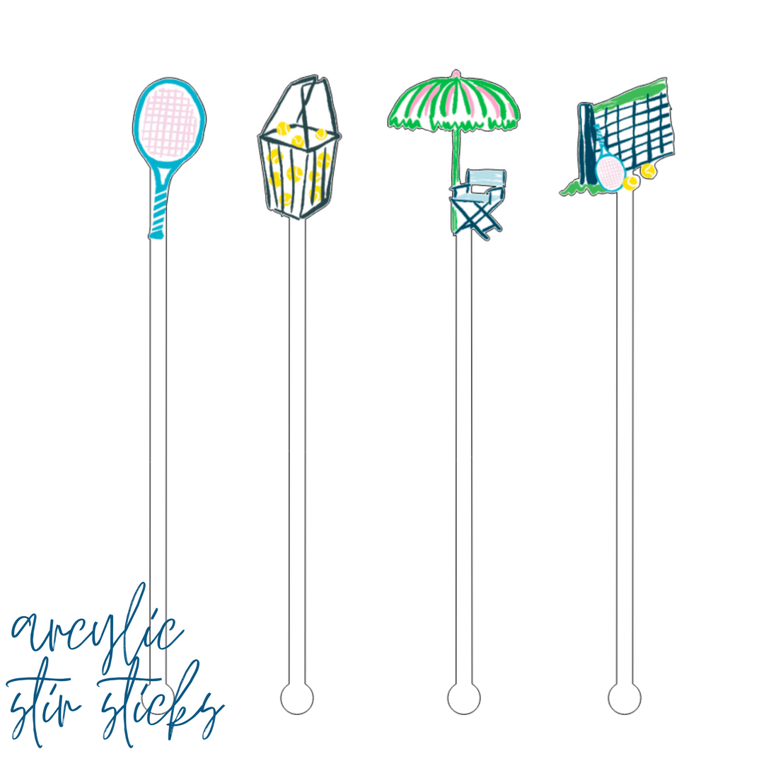 Vintage Tennis Racquet Acrylic Stir Stick Beverage Stick | set of 4