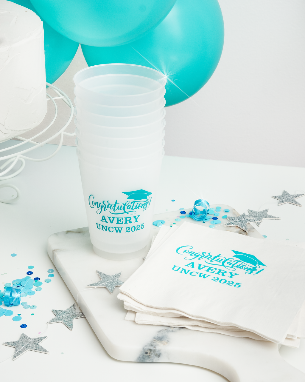 The little details make the biggest impression. Whether you're planning a wedding weekend, hosting a graduation party, or celebrating a sweet new baby, our custom napkins and shatterproof cups add that perfectly personalized touch to your event.