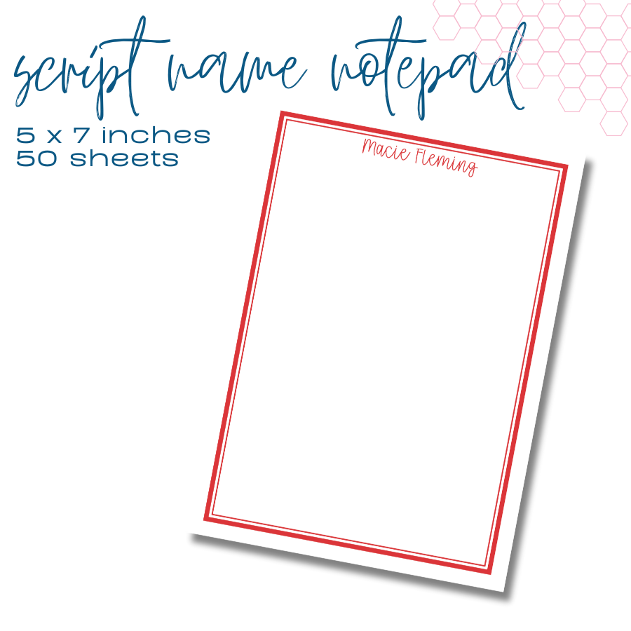 Classic Script Name Large Notepad | 5x7 Inches | 50 Sheets