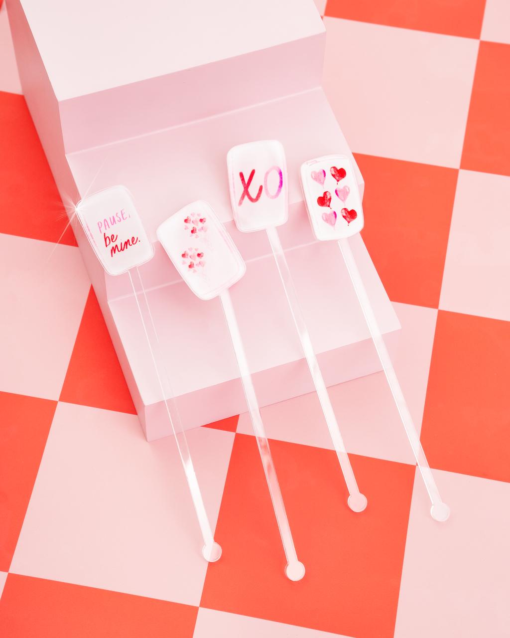 Add a playful clink to your cocktail glass with our Valentine’s Day Mahjong Acrylic Stir Sticks! Featuring charming mahjong tile designs, this set of four is perfect for Galentine’s gatherings, romantic dinners, or adding a little love to your bar cart.