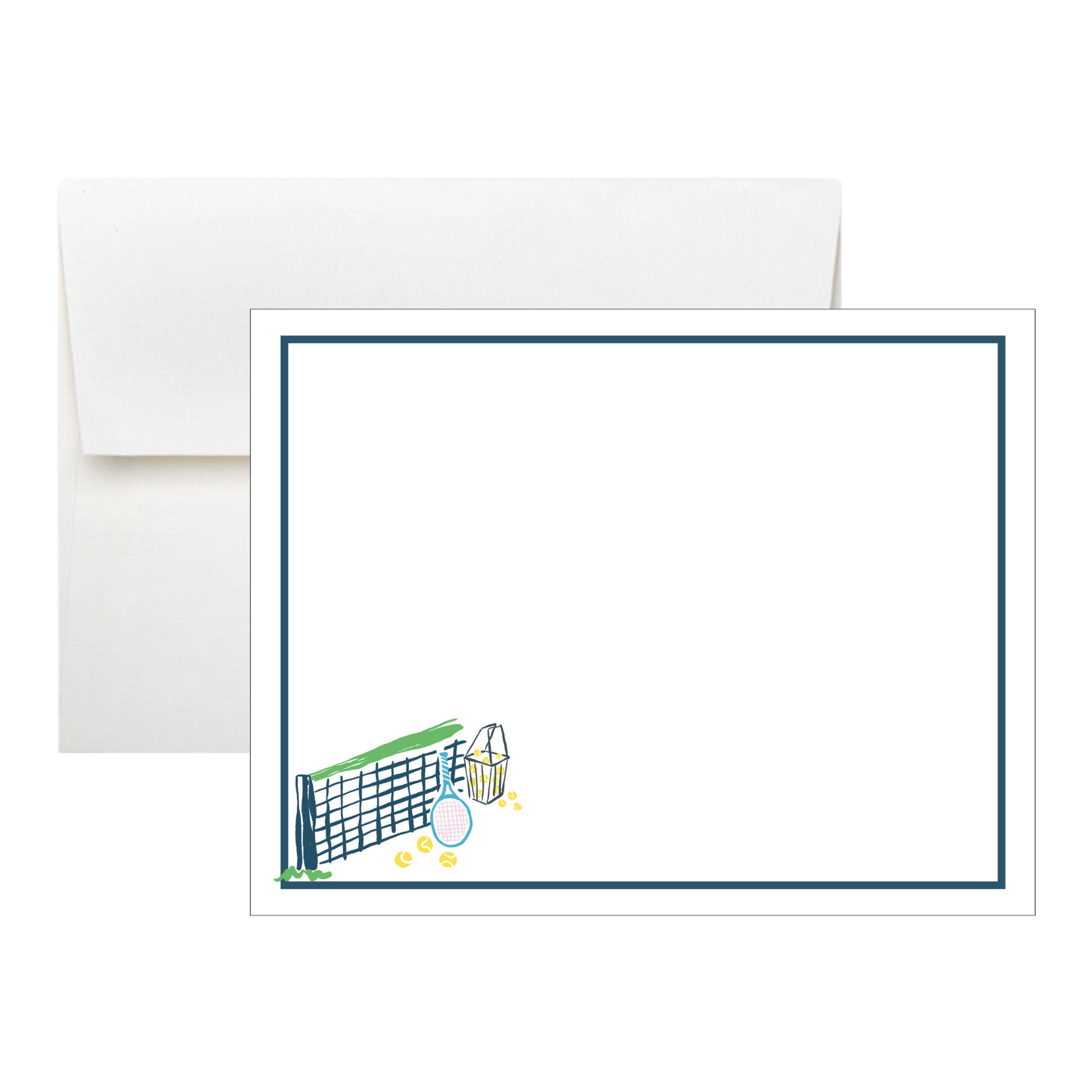 Printed on luxe heavyweight cardstock, this set of 10 flat note cards makes a thoughtful gift for tennis lovers or a polished touch for country club correspondence. Pair them with coordinating napkins, tea towels, and cups from the Meet Me on the Court collection for a complete set that’s game, set, match.