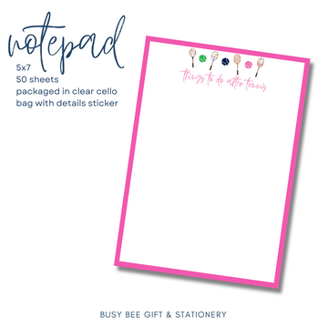 Keep your game on point with our 5x7 Tennis Notepad. With 50 lined sheets, it's perfect for tracking scores, planning strategy, or simply doodling between matches. A compact, courtside essential for tennis lovers.